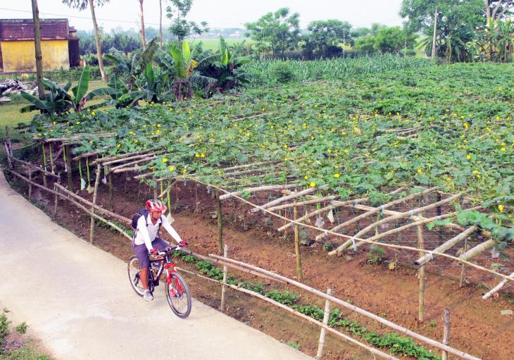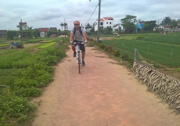 The ride continues on a remote countryside road for another 20 minutes or so before turning off on a small section of single track that leads through a grove of palms growing on the side of the river to Tra Que vegetable village. The ride finishes with a pleasant 5 kilometers pedal into town on back roads, and we end right where we started, at your hotel in Hoi An.